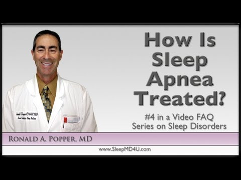 How is obstructive sleep apnea syndrome treated? There are a variety of treatments available for obstructive sleep apnea syndrome. Weight loss is always encouraged for those patients who are overweight. In patients who's sleep apnea occurs predominately on their back, they can be trained or taught to sleep on their sides and this is often effective in treating their obstructive sleep apnea syndrome. In addition, various surgical procedures can be performed by either ear, nose and throat doctors, or dentists, to remove some of the obstructing tissues in the upper airway. Dentists also make what are known as oral appliances, which are devices that are placed within the mouth to either hold the tongue down or advance the lower jaw forward, bringing the tongue away from the back wall of the throat. A newer device, known as Provent Therapy, provides positive airway pressure through the use of a small valve that is inserted through the nostrils and held in place by a bandage-type device. The treatment of choice for most cases of obstructive sleep apnea syndrome is a device called Continuous Positive Airway Pressure (CPAP). I'm Dr. Ronald Popper, medical director of the Southern California Pulmonary and Sleep Disorders Medical Center in Thousand Oaks, California. To view more videos that help to address all of your questions about sleep apnea and other sleep disorders, please visit our website at SleepMD4You.com. Thank you for watching and always remember, sleep well tonight for a better day tomorrow.
