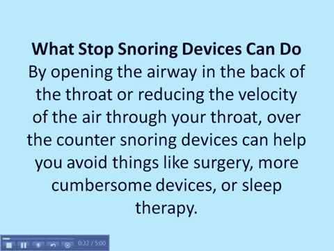 Stop Snoring Devices The Dangers of Snoring It may sound extreme, but it? true that snoring can kill you. Even if you don? have sleep apnea, snoring can cause heart failure because your heart muscle isn? getting enough rest due to your lack of REM sleep. Types of Stop Snoring Devices Stop snoring devices come in the form of pillows, breathing strips, chinstraps, sprays, mouthpieces, and CPAP machines. They all attempt to reduce or stop your snoring in different ways. What Stop Snoring Devices Can Do By opening the airway in the back of the throat or reducing the velocity of the air through your throat, over the counter snoring devices can help you avoid things like surgery, more cumbersome devices, or sleep therapy. You'll sleep more so you'll feel less tired and your body temperature, immune function, and nervous system function will all increase. Lack of sleep has also been linked to weight problems. Go to the link below to find out more about Stop Snoring Devices and see the one that we recommend
